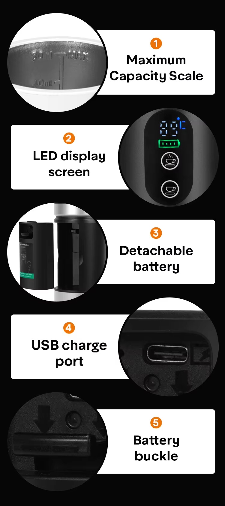 * Portable, Compact, USB-C Rechargeable and self-heating